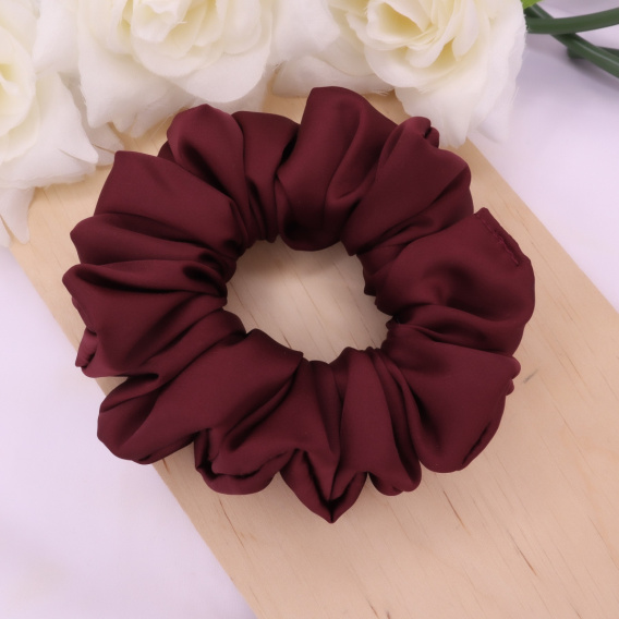 Scrunchie jest wykonana z miękkiej i delikatnej satyny poliestrowej z dodatkiem jedwabiu, dzięki, której nie szarpie i nie wyrywa włosów.
