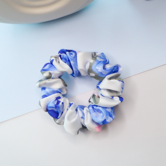 Gumka do włosów - scrunchie S niebieskie kwiaty